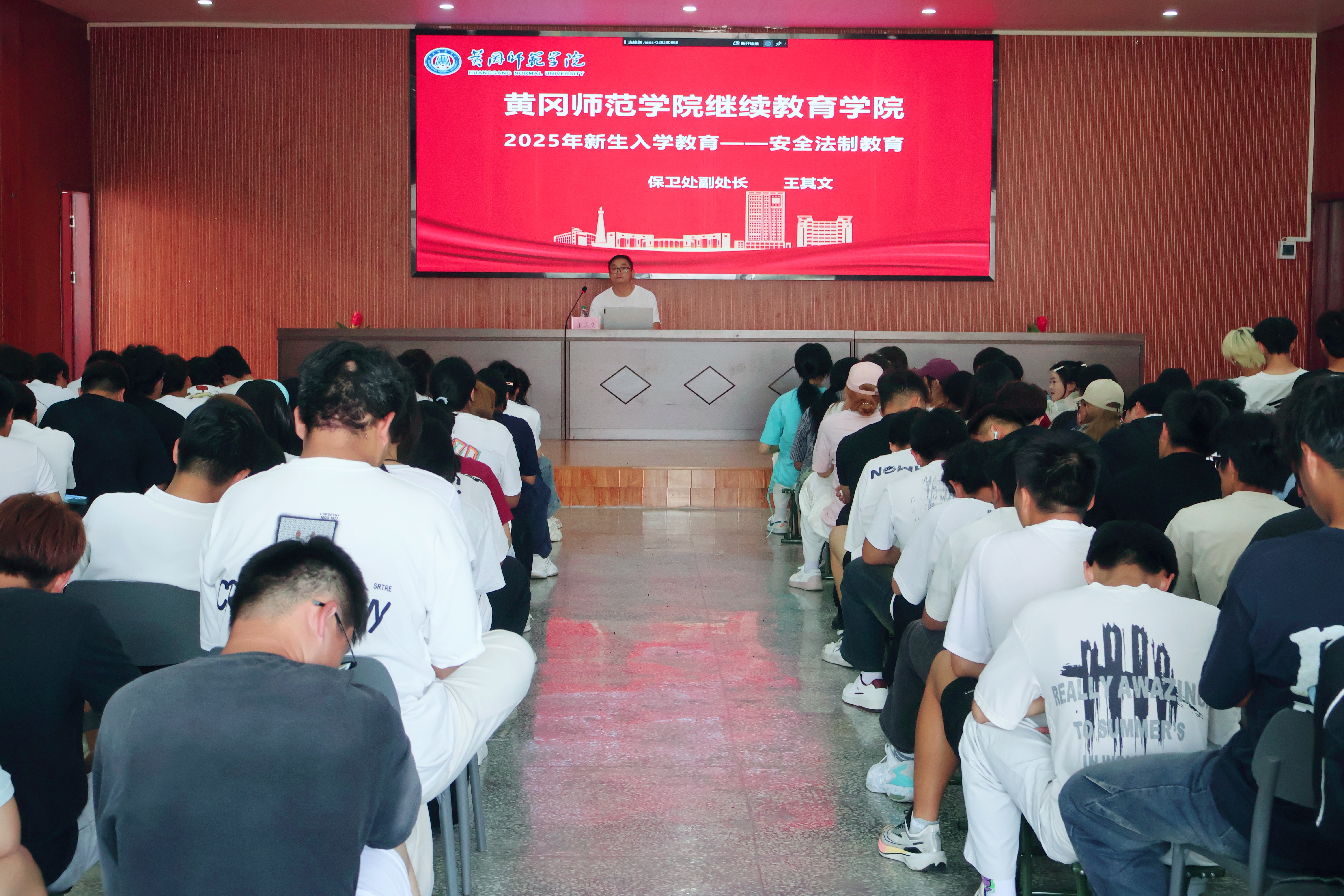 保卫处副处长王其文围绕交通安全、消防安全、治安安全、国防安全主题,结合校园实际案例与社会典型事件,对各安全领域进行细致讲解,填补了师生在安全知识领域的认知盲区,丰富了师生校园安全认知。